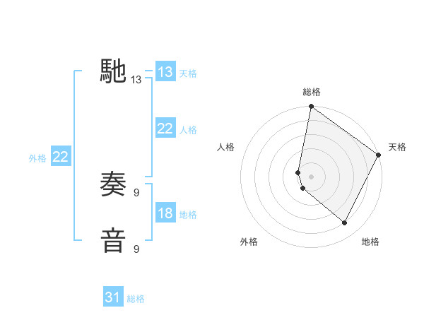 馳 奏音さんの総格は31画の5点!
