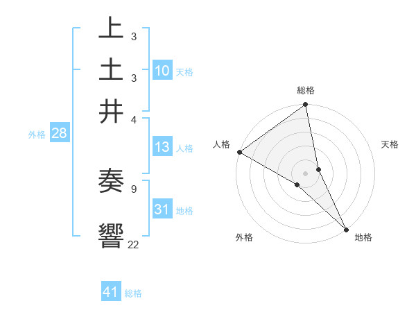 上土井 奏響さんの地格は31画の5点!