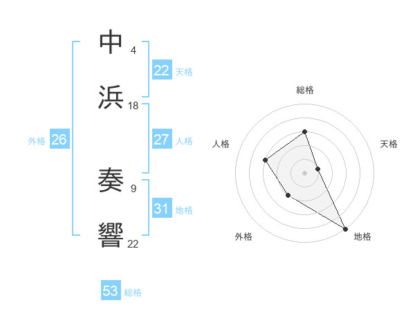 中浜 奏響さんを姓名の画数から五運を鑑定