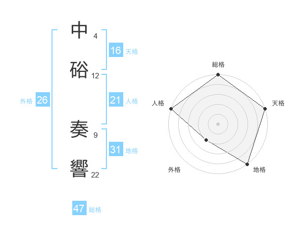 中硲 奏響さんの総格は47画の5点!