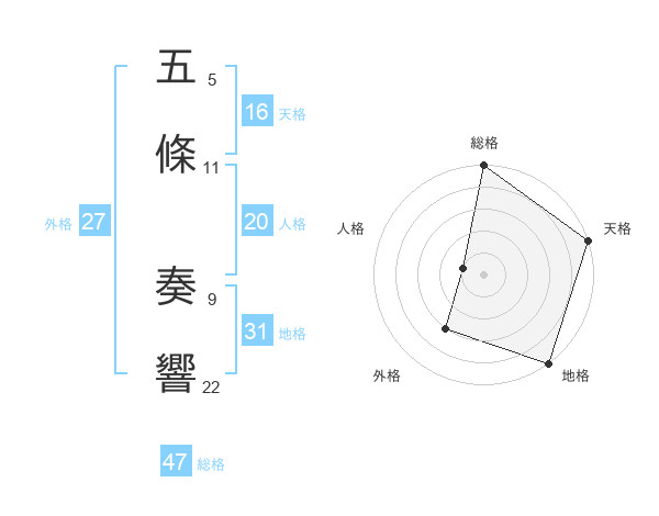 五條 奏響さんの総格は47画の5点!
