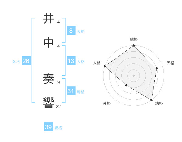 井中 奏響さんの総格は39画の5点!