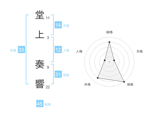 堂上 奏響さんを姓名の画数から五運を鑑定