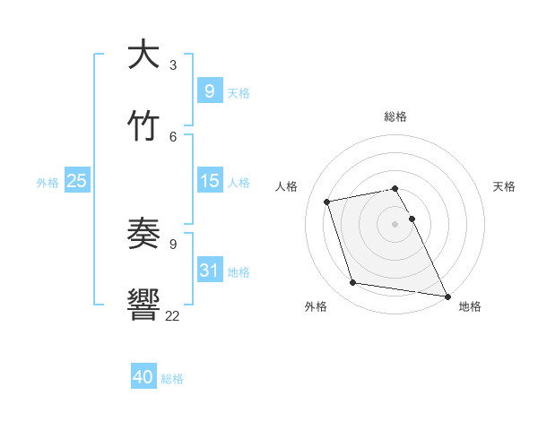 大竹 奏響さんを姓名の画数から五運を鑑定
