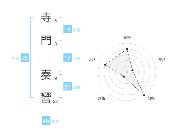 寺門 奏響さんを姓名の画数から五運を鑑定