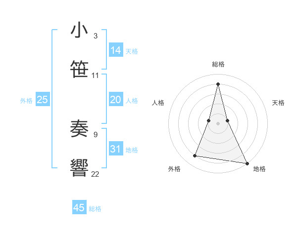 小笹 奏響さんの総格は45画の4点!