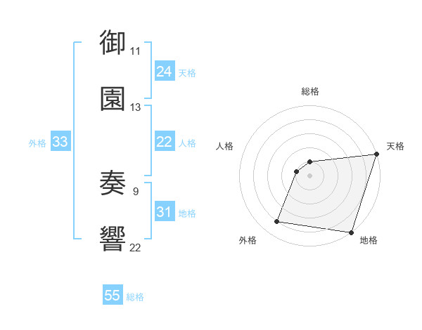 御園 奏響さんの総格は55画の1点!