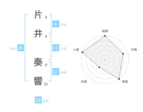 片井 奏響さんの総格は39画の5点!