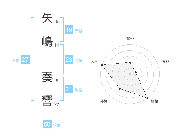 矢嶋 奏響さんを姓名の画数から五運を鑑定