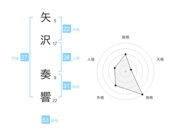 矢沢 奏響さんの地格は31画の5点!