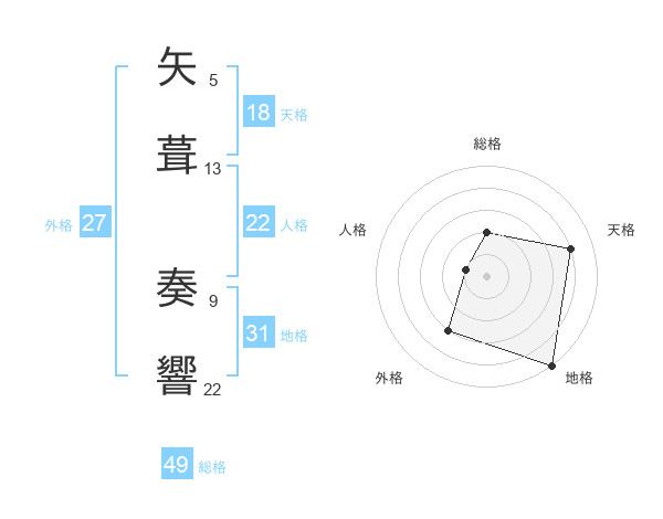 矢葺 奏響さんの地格は31画の5点!