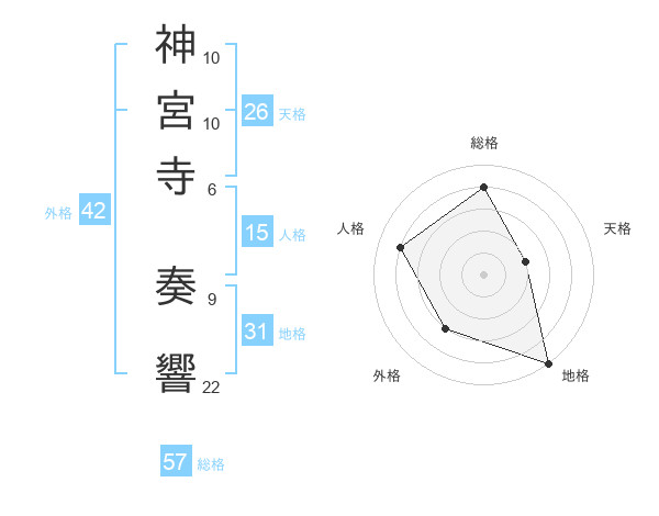 神宮寺 奏響さんを姓名の画数から五運を鑑定
