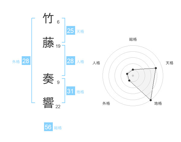 竹藤 奏響さんの地格は31画の5点!