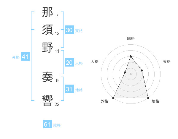 那須野 奏響さんの総格は61画の3点