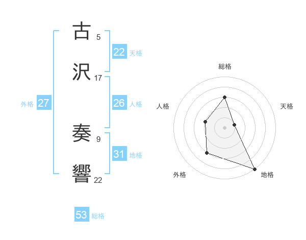 古沢 奏響さんの総格は53画の3点!