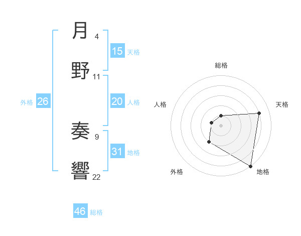 月野 奏響さんの総格は46画の1点!