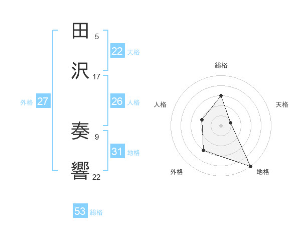 田沢 奏響さんを姓名の画数から五運を鑑定