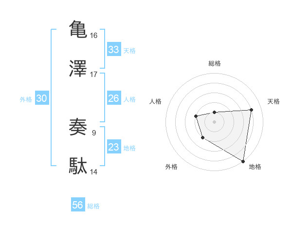 亀澤 奏駄さんを姓名の画数から五運を鑑定