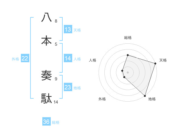 八本 奏駄さんを姓名の画数から五運を鑑定