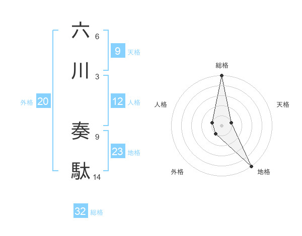 六川 奏駄さんの総格は32画の5点!