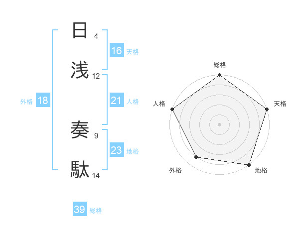 日浅 奏駄さんの総格は39画の5点!