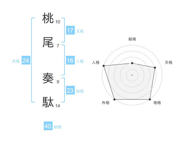 桃尾 奏駄さんを姓名の画数から五運を鑑定