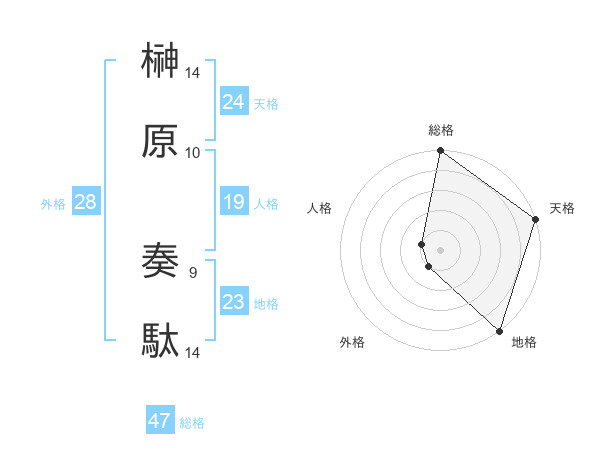 榊原 奏駄さんを姓名の画数から五運を鑑定