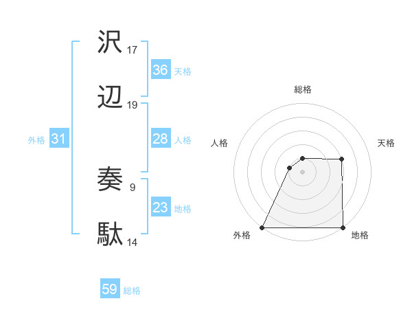 沢辺 奏駄さんを姓名の画数から五運を鑑定