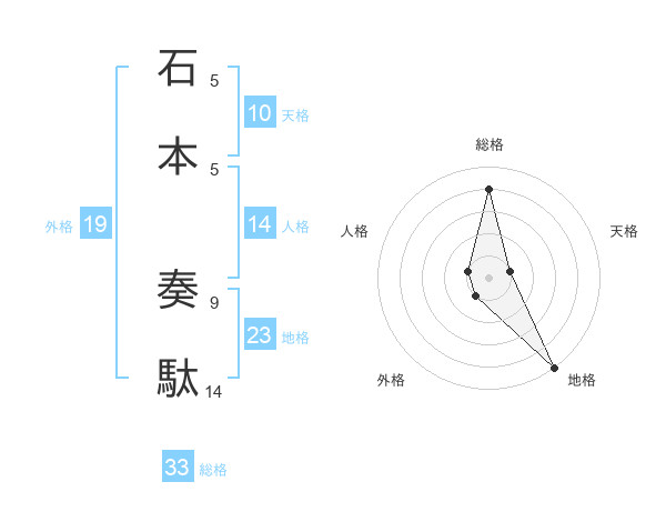 石本 奏駄さんの総格は33画の4点!