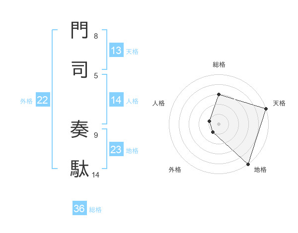 門司 奏駄さんの天格は13画の5点!