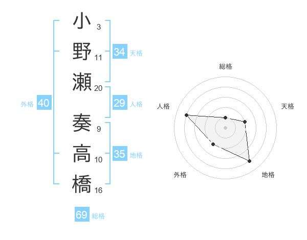 小野瀬 奏高橋さんを姓名の画数から五運を鑑定