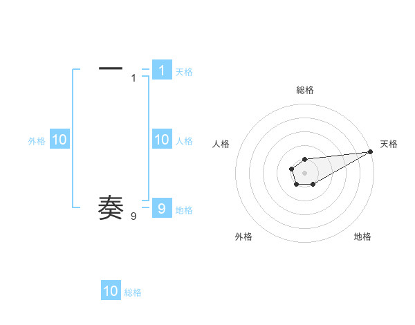 一 奏さんの天格は1画の5点!