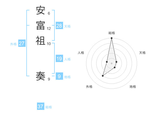 安富祖 奏さんの総格は37画の5点!
