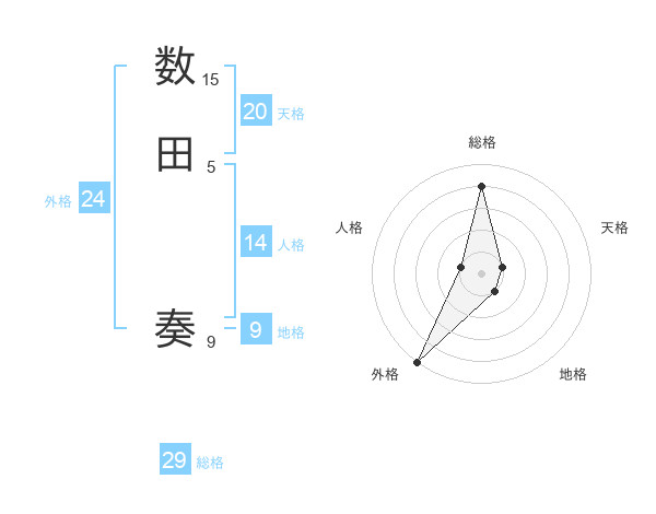 数田 奏さんの天格は20画の1点!