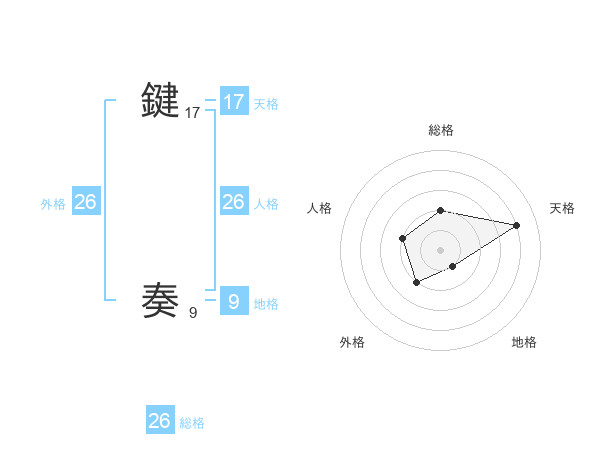鍵 奏さんの外格は26画の2点!