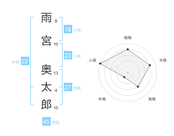 雨宮 奥太郎さんを姓名の画数から五運を鑑定