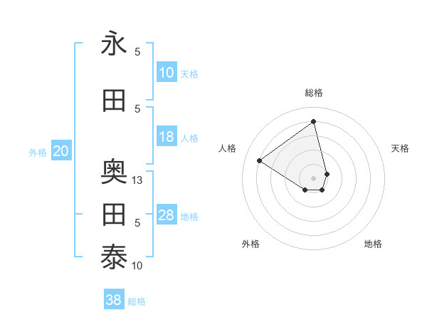 永田 奥田泰さんを姓名の画数から五運を鑑定