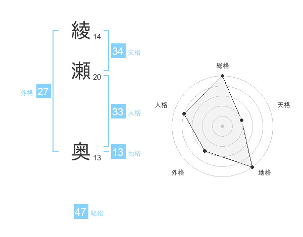綾瀬 奥さんの総格は47画の5点!