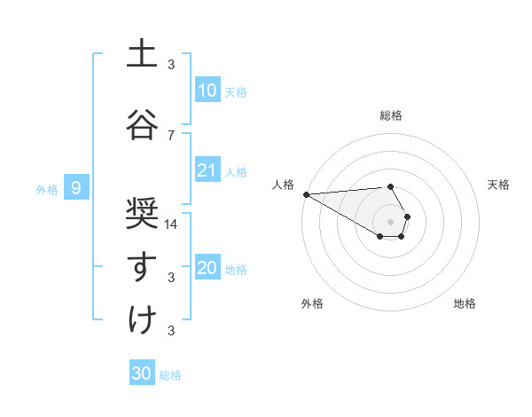 土谷 奨すけさんを姓名の画数から五運を鑑定