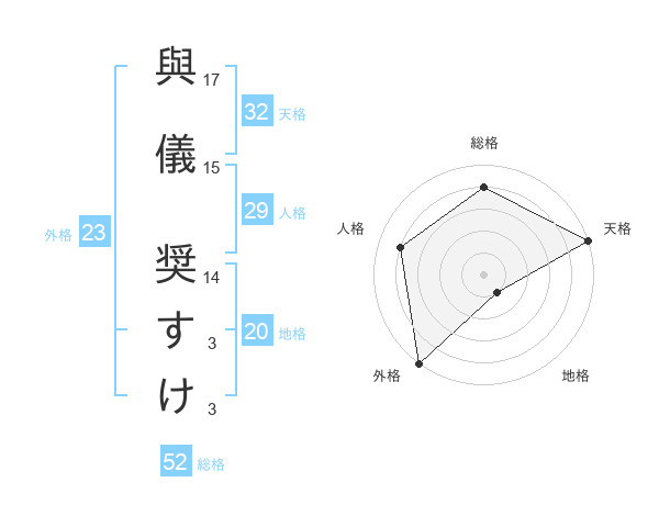 與儀 奨すけさんの総格は52画の4点!
