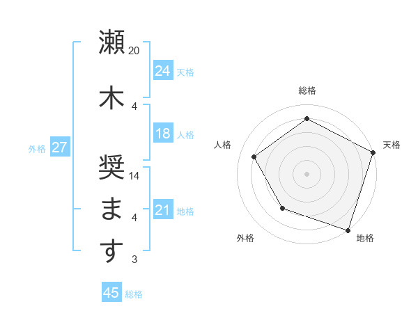 瀬木 奨ますさんを姓名の画数から五運を鑑定