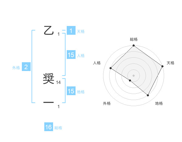 乙 奨一さんの地格は15画の4点!