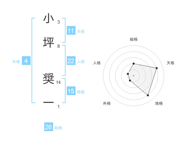 小坪 奨一さんを姓名の画数から五運を鑑定