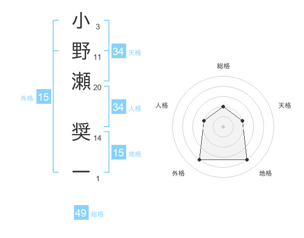 小野瀬 奨一さんを姓名の画数から五運を鑑定