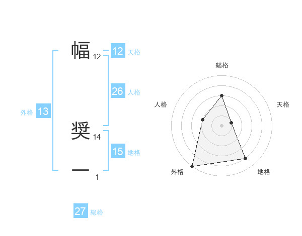 幅 奨一さんの天格は12画の1点!