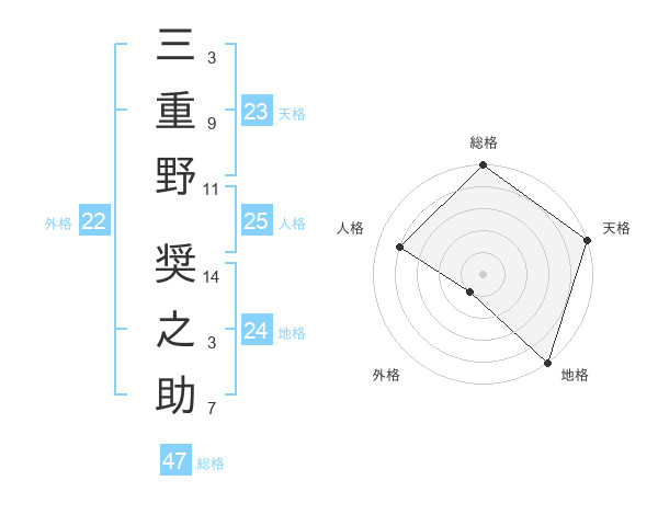 三重野 奨之助さんを姓名の画数から五運を鑑定