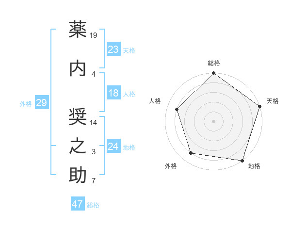 薬内 奨之助さんを姓名の画数から五運を鑑定
