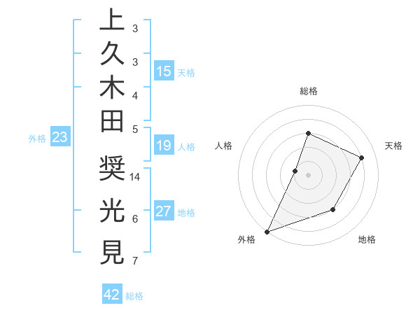 上久木田 奨光見さんを姓名の画数から五運を鑑定