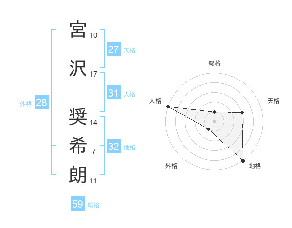 宮沢 奨希朗さんの総格は59画の1点!
