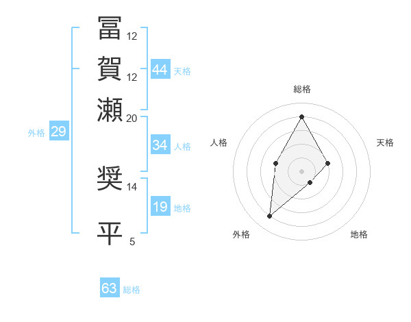 冨賀瀬 奨平さんを姓名の画数から五運を鑑定